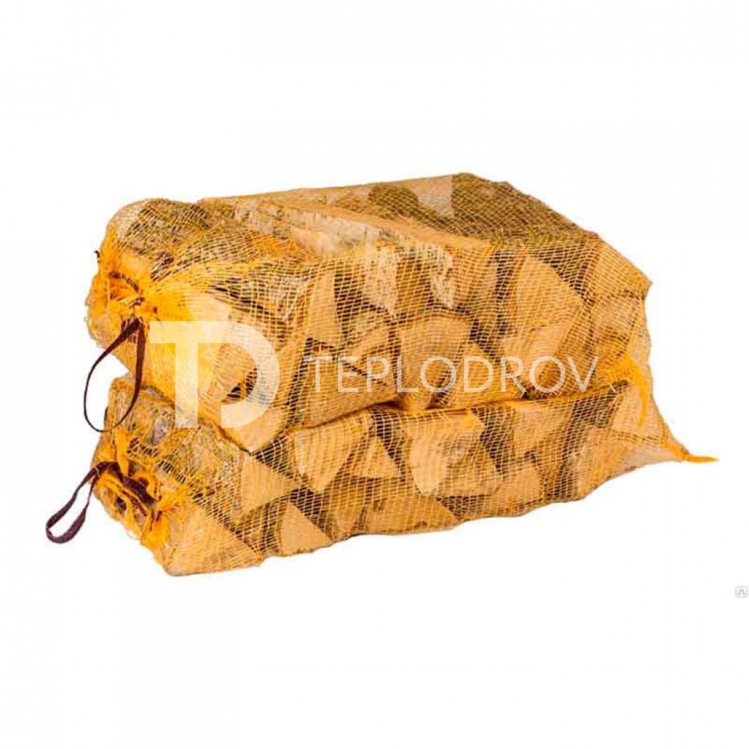 Написать в WhatsAppСухие березовые колотые дрова в сетке.